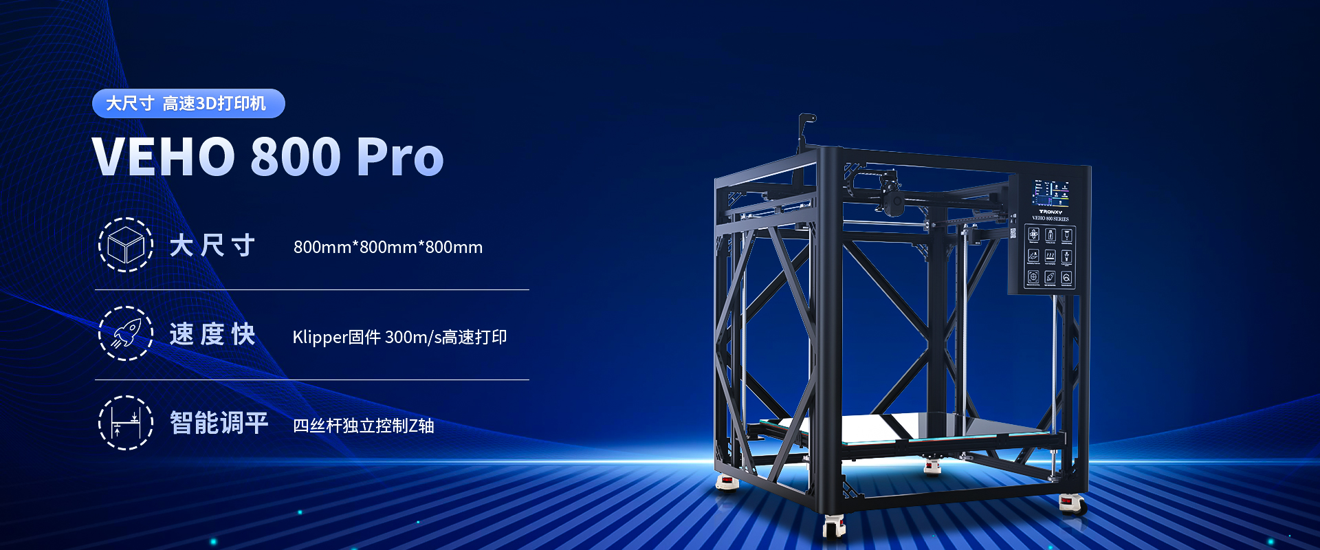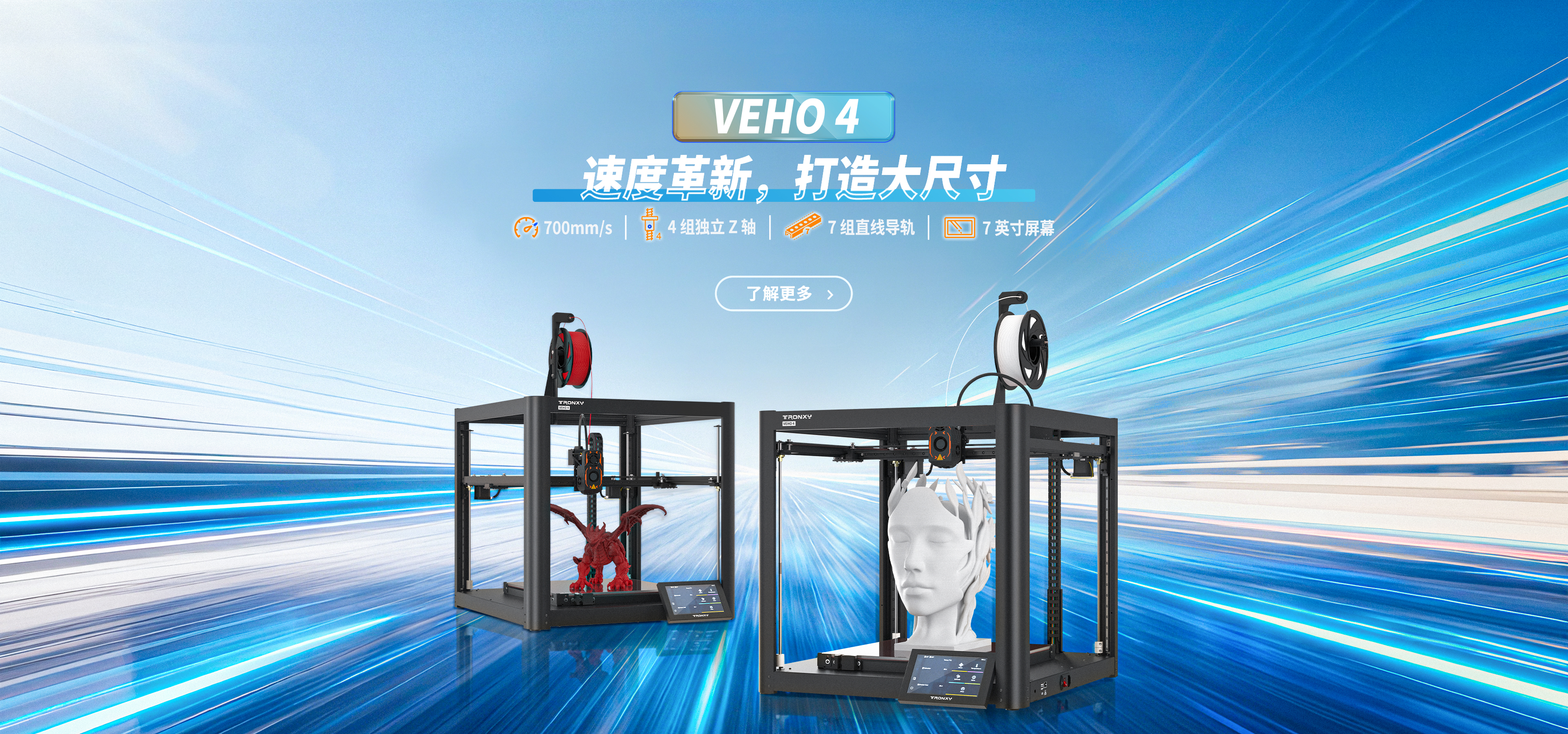 自主設計,定制生產(chǎn)線,可生產(chǎn)從桌面級到工業(yè)級等 尺寸從180mm到1.6米的3D打印機